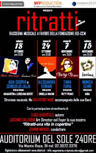 Ritratti in musica è un viaggio musicale artistico che racconta la metamorfosi femminile attraverso le canzoni delle grandi interpreti della musica italiana dagli anni 60 ad oggi,un percorso ricco di stati d'animo, momenti di vita che le artiste anno saputo interpretare nelle canzoni scritte e musicate da grandi autori.